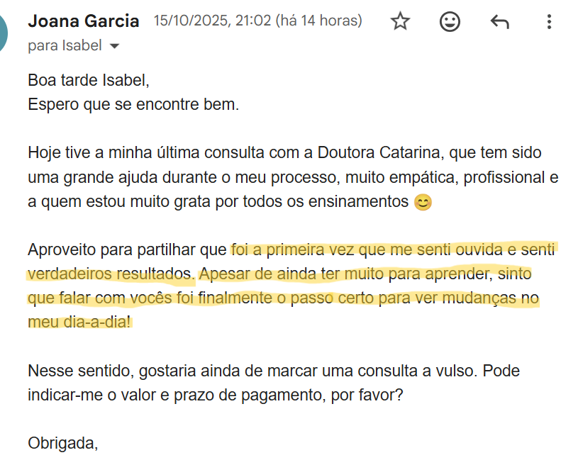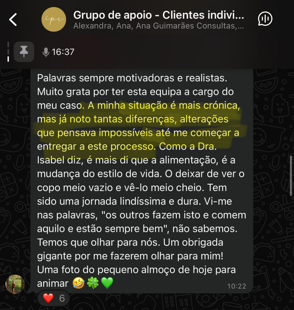 A consulta de nutrição clínica é o momento de parares de adivinhar e começares a ter clareza sobre o que está a acontecer no teu corpo, com análise de todo o teu caso em equipa e recomendações adaptadas ao teu dia a dia.